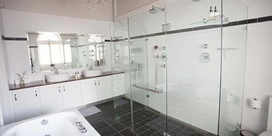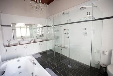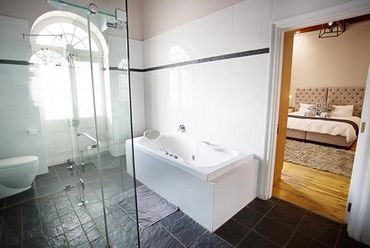 The state of the art en-suite bathroom is equipped with a toilet, double shower, double basin and hydro bath.