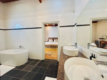 The state of the art en-suite bathroom is equipped with a toilet, double shower, double basin and hydro bath.